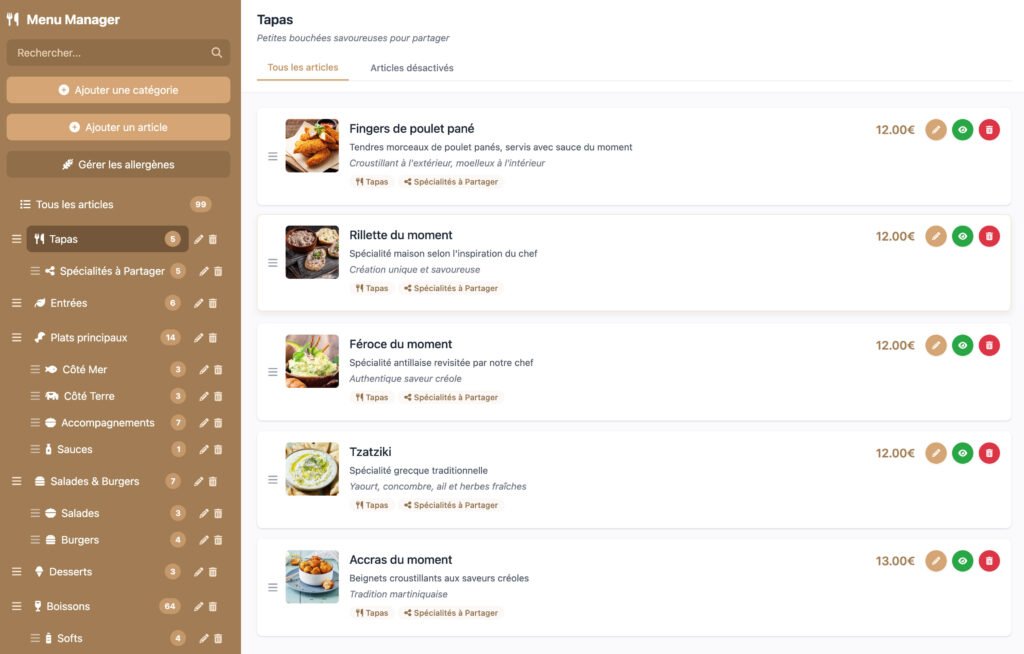 QuickMenu Pack professionnel